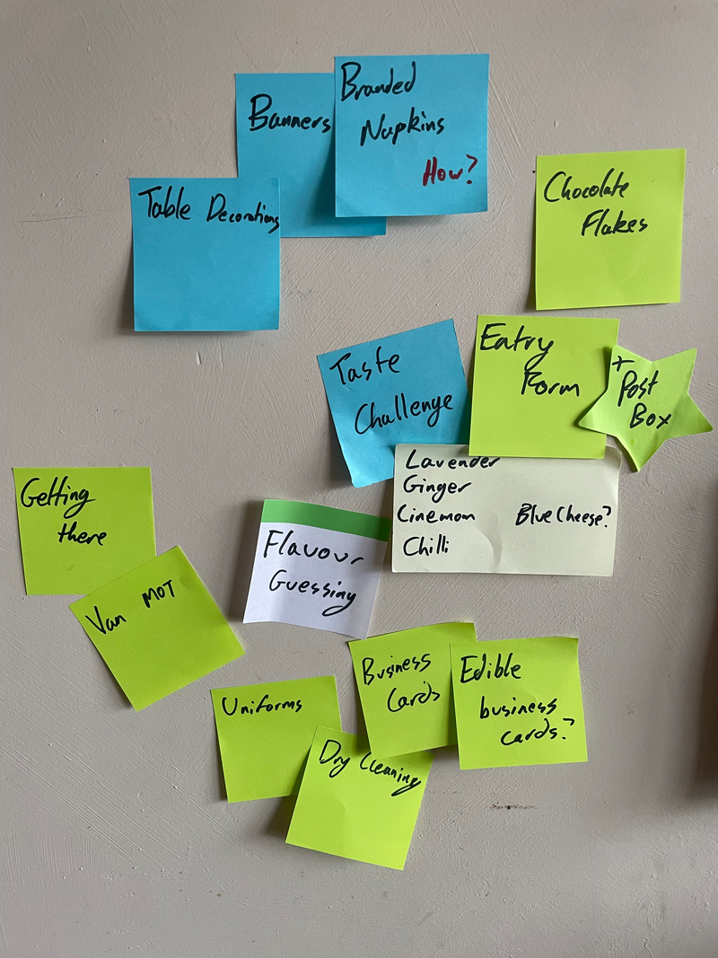Analyse the sticky notes in the attached image. Transcribe the text, then synthesise the findings. Your output should clearly identify: